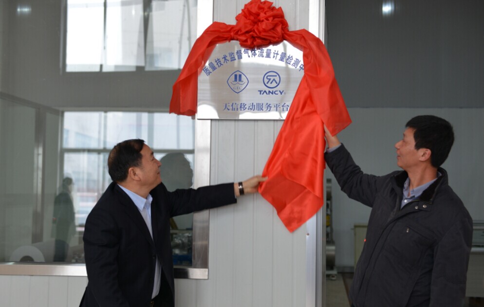 大约上午9点半,天信所有中高层领导和江苏省质量技术监督气体流量计量检测中心领导移步服务平台现场,在热烈的掌声和喜庆的鞭炮声中,天信仪表集团总裁范叔沙和镇江计量所所长石建荣共同为质量技术监督气体流量计量检测中心——天信移动服务平台揭牌,在场所有领导和相关人员共同见证了这一重要的时刻,相信这一历史性时刻对于双方来说都有里程碑式的意义。简短而隆重的揭牌仪式后,大家进行了合影留念,然后由范总亲自带领石所长一行参观工厂,热情详细地介绍了公司目前的经营状况和将来的发展规划,为这一次签约揭牌仪式画上了一个完美的句号。