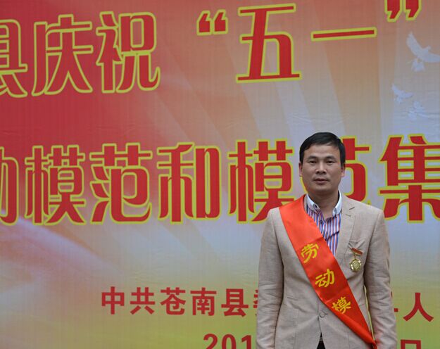 2015年4月24日上午,苍南县庆祝五一劳动节暨劳动模范和模范集体表彰大会在县行政中心隆重召开,天信员工黄象然被授予“苍南县劳动模范”荣誉称号。