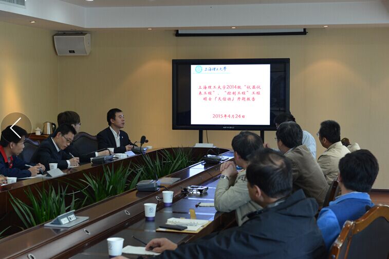 2015年4月24日,天信仪表集团与上海理工大联合培养硕士开题报告会在公司四楼会议室召开。报告会由副总工程师兼研发中心总监陶朝建主持。来自上海理工大的7位导师现场聆听了天信学员的开题报告。