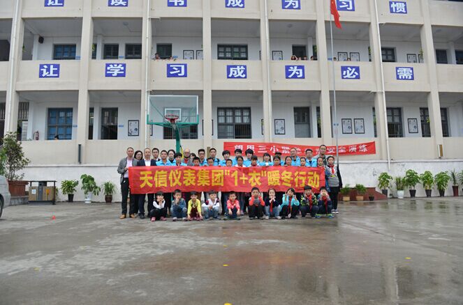 今年是天信仪表集团第二季1+衣送冬衣活动。自去年开始,天信就向广大员工发起1+衣冬衣捐赠倡议,即捐助一件家中闲置的冬衣,助一个贫困地区的孩子抵御严冬。此倡议得到了员工们的积极响应,一件件冬衣被送到了收集点,打成包裹,运往了西部贫困山区。今年9月底,天信就开始筹划第二季1+衣行动,不仅发动本公司员工捐赠,还鼓励员工发动身边的亲朋好友参与捐赠,当党办主任黄华在朋友圈发出捐赠消息后,次日便收到了初中同学亲自送来的上百件有吊牌的全新童装,其中大部分是即可用上的羽绒服、外套、长裤等,同学还说感谢地说太好了!以后家里有闲置冬衣有地方送了!