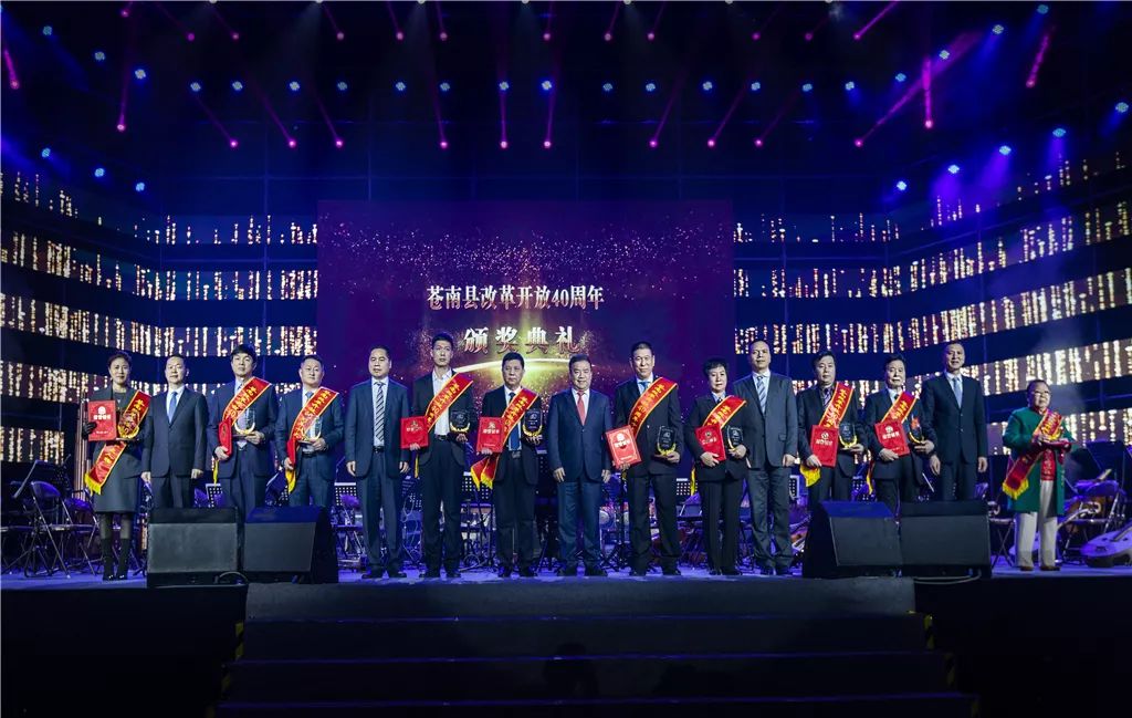 2月24日,放歌新时代2019年苍南县新春音乐会暨改革开放40周年颁奖典礼在苍南县体育馆隆重举行,县委书记黄荣定、县长郑建忠等县领导出席颁奖典礼并为十大人物”颁奖。我公司常务副总裁叶朋获苍南改革开放40周年十大人物。